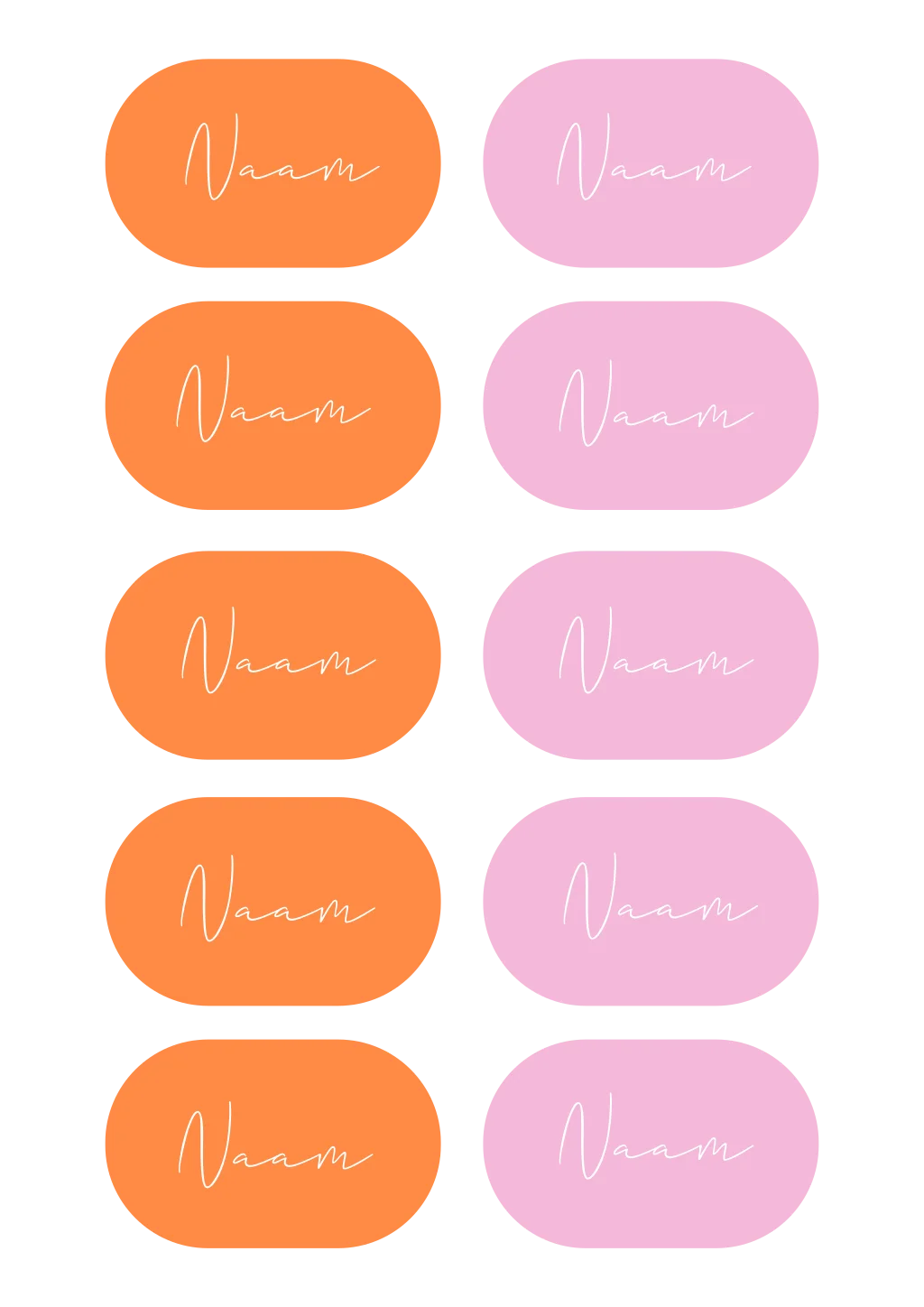 Hoe mooi zijn deze roze en oranje naamkaartjes in ovale vorm? Maak jullie bruiloft compleet en bestel naamkaartjes in de stijl van jullie trouwkaart. Pas de namen gemakkelijk zelf aan in de editor.