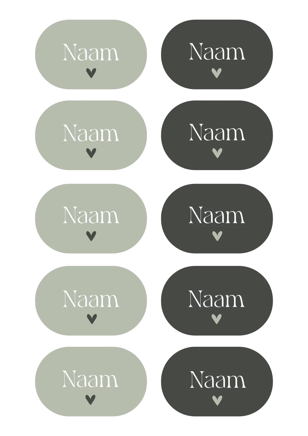 Naamkaartjes bruiloft ovaal in groen tinten | 10 stuks