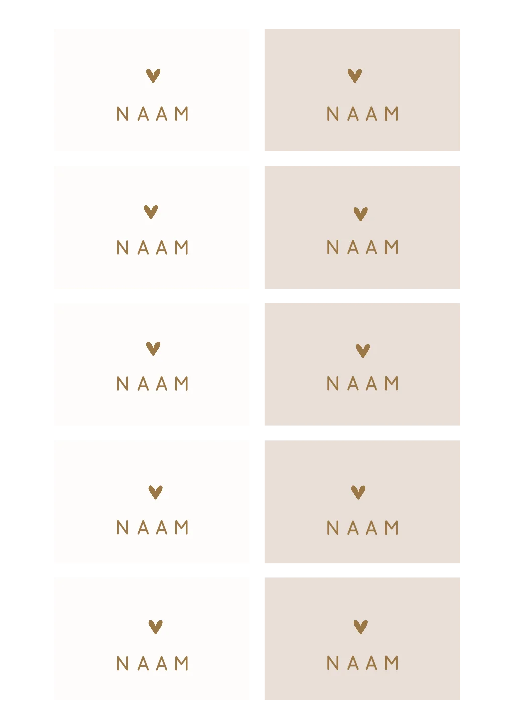 Hoe mooi zijn deze naamkaartjes in verschillende neutrale kleuren? Maak jullie bruiloft compleet en bestel naamkaartjes in de stijl van jullie trouwkaart. Pas de namen gemakkelijk zelf aan in de editor.