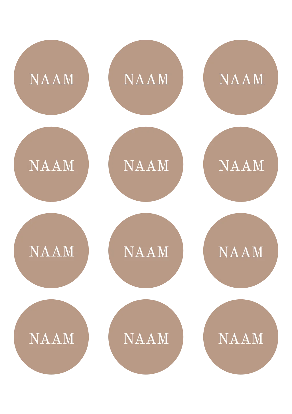 Hoe elegant zijn deze bruine ronde naamkaartjes? Maak jullie bruiloft compleet en bestel naamkaartjes in de stijl van jullie trouwkaart. Pas de namen gemakkelijk zelf aan in de editor.