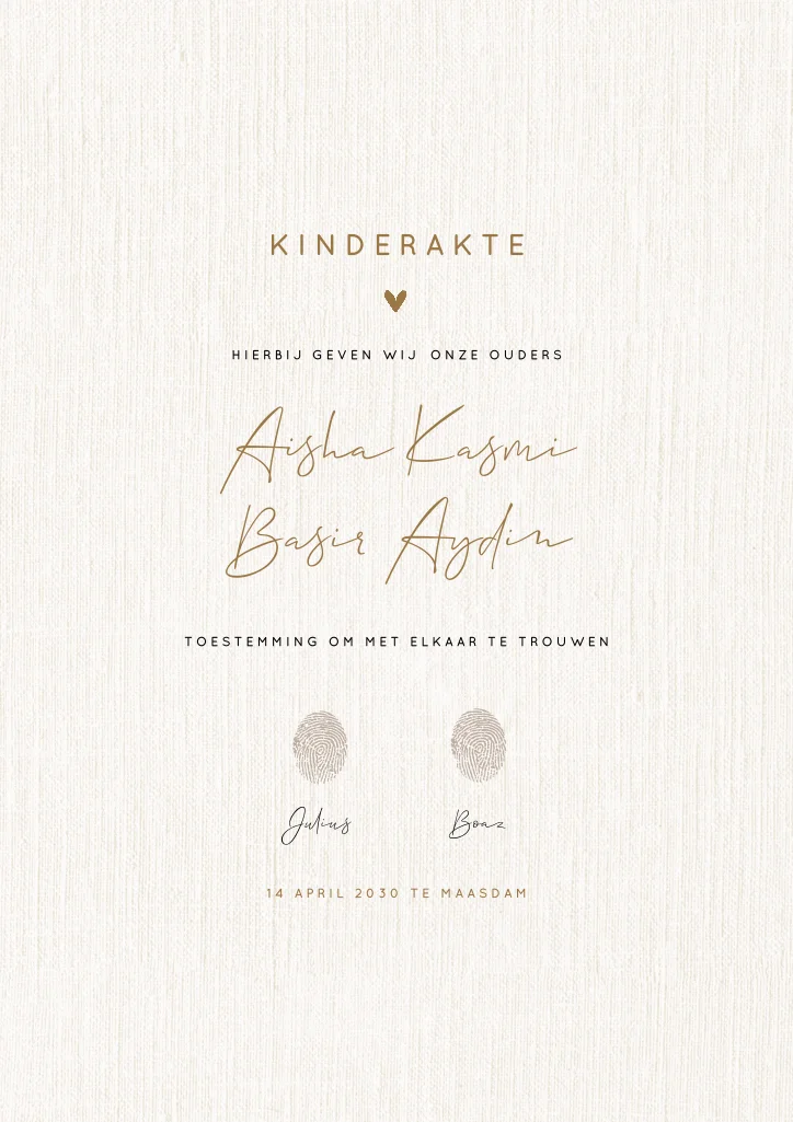 Hoe leuk is het om jullie kinderen te betrekken bij jullie huwelijksceremonie! Met deze basis ontwerp je eenvoudig een eigen kinderakte helemaal in stijl van jullie trouwkaart.