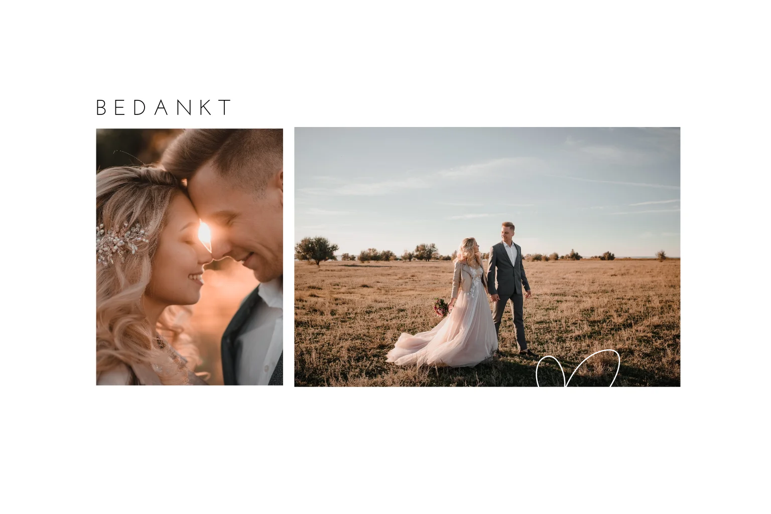 Zijn jullie ook zo ontzettend trots op de trouwfoto's? Kies voor een collage kaart om jullie gasten te bedanken voor een onvergetelijke dag.