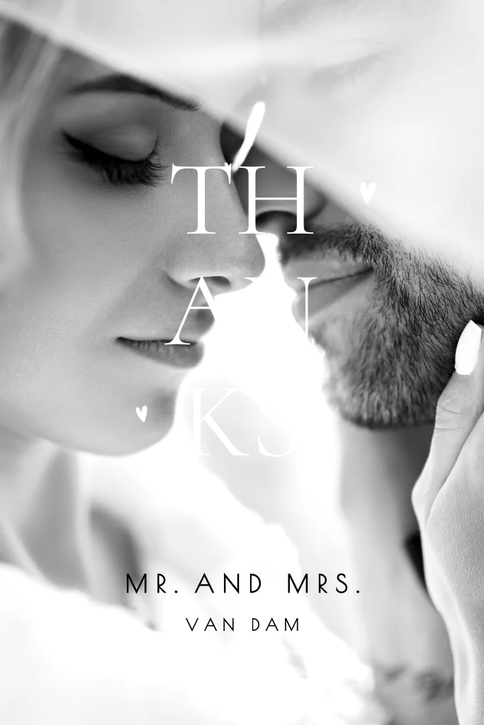 Romantische bedankkaart om naar de gasten te sturen die aanwezig zijn geweest op jullie grote dag. Het dubbelzijdige koperfolie maakt het ontzettend luxe.