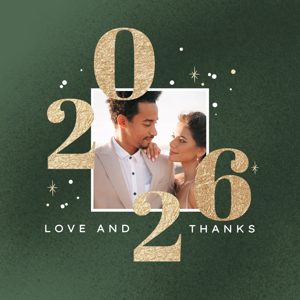 Jullie eerst kerstfeest als man en vrouw. Stuur familie en vrienden deze kerstbedankkaart met foto en kerst details. Vervang de foto op de voorzijde voor een prachtige foto van jullie grote dag.