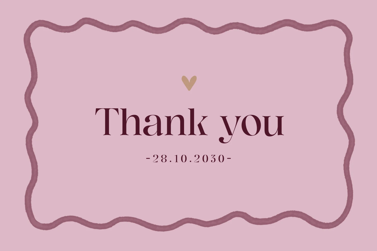 Een elegante bedanktkaart voor jullie trouwdag met een roze hartje. Personaliseer eenvoudig in onze online editor.
