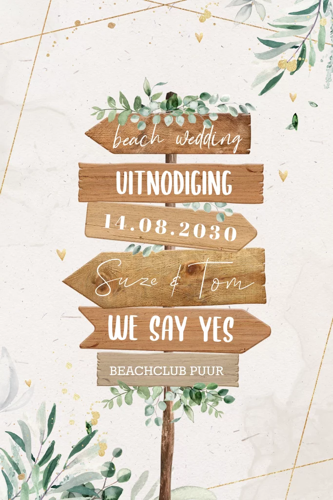 Deze trouwkaart maakt deel uit van een complete set in deze stijl.