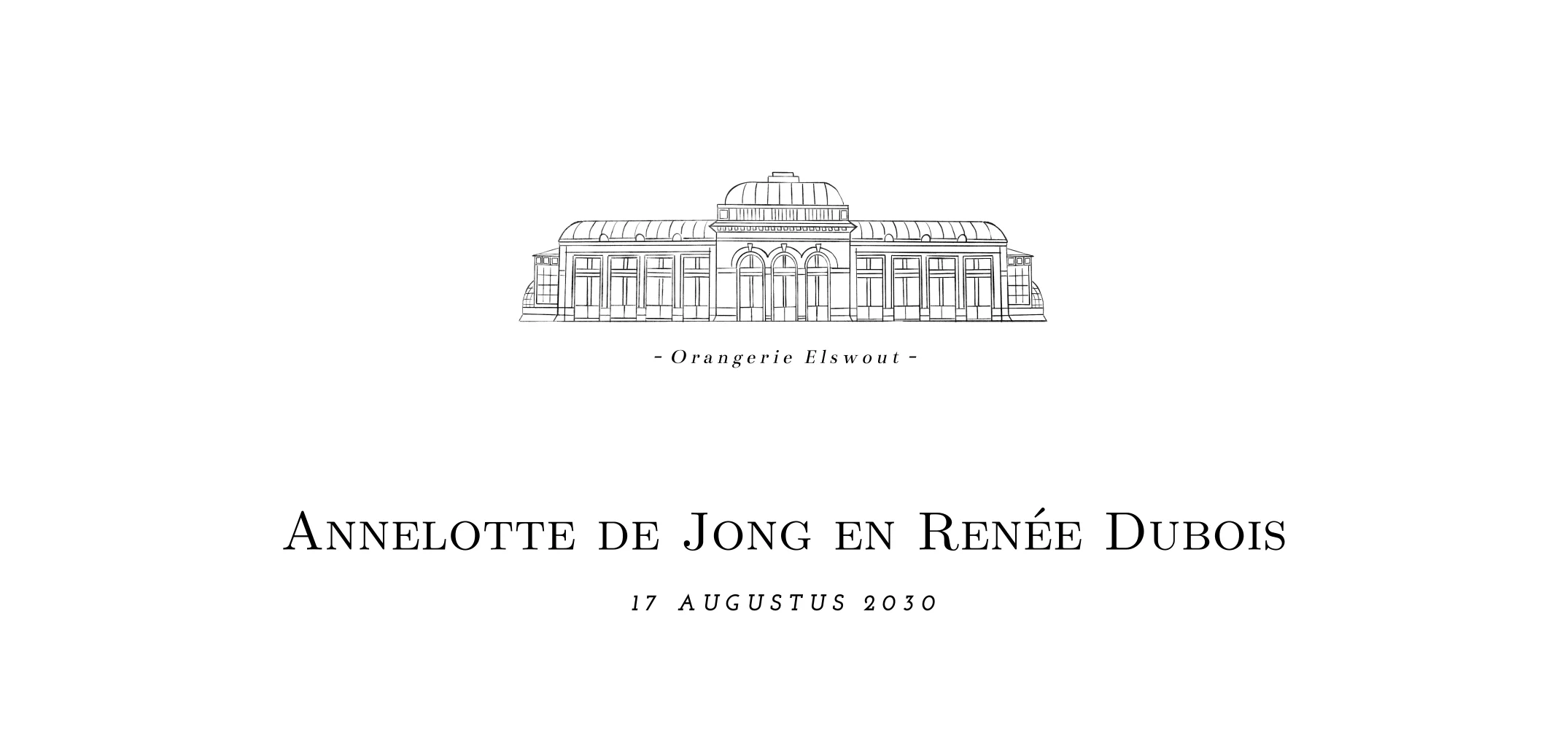 Eenvoudig, stijlvol, zwart-wit. Een clean ontwerp met een klassieke uitstraling en illustratie van de Orangerie. Maak jullie uitnodiging huwelijk helemaal eigen door het toevoegen van jullie dagindeling, namen en eventueel een kleur.