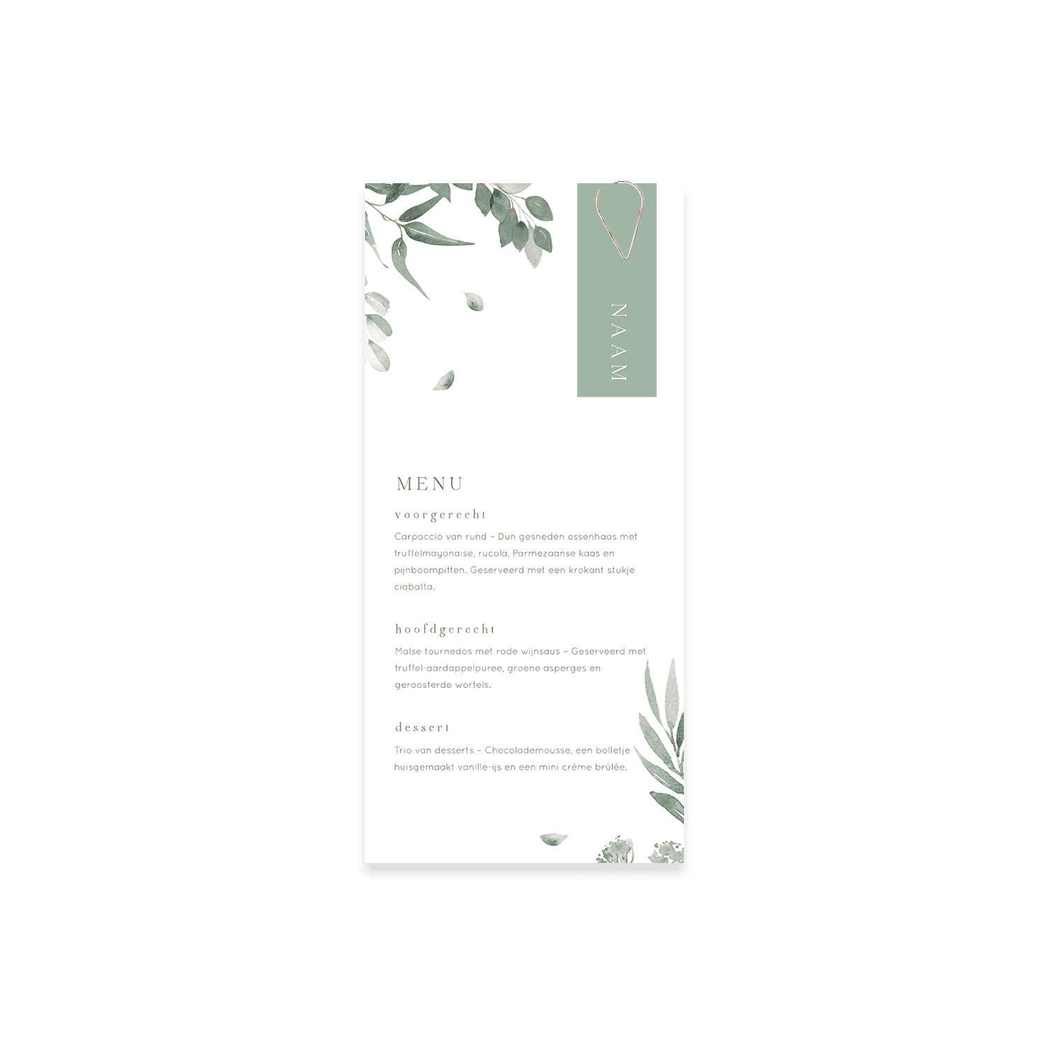 Menukaart bruiloft botanisch met optioneel naamkaartje
