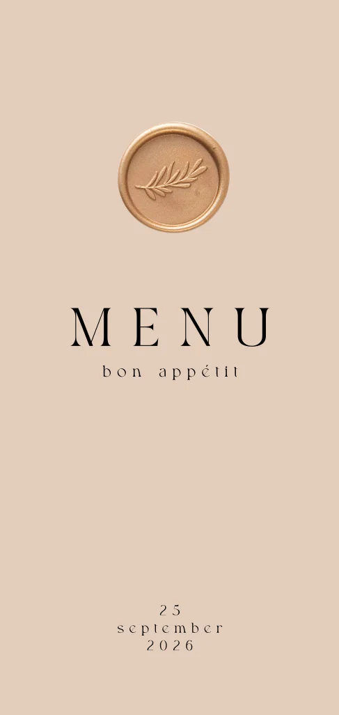 Hoe stijlvol is deze menukaart met lakzegel? Deze menukaart schittert op tafel bij ieder diner.