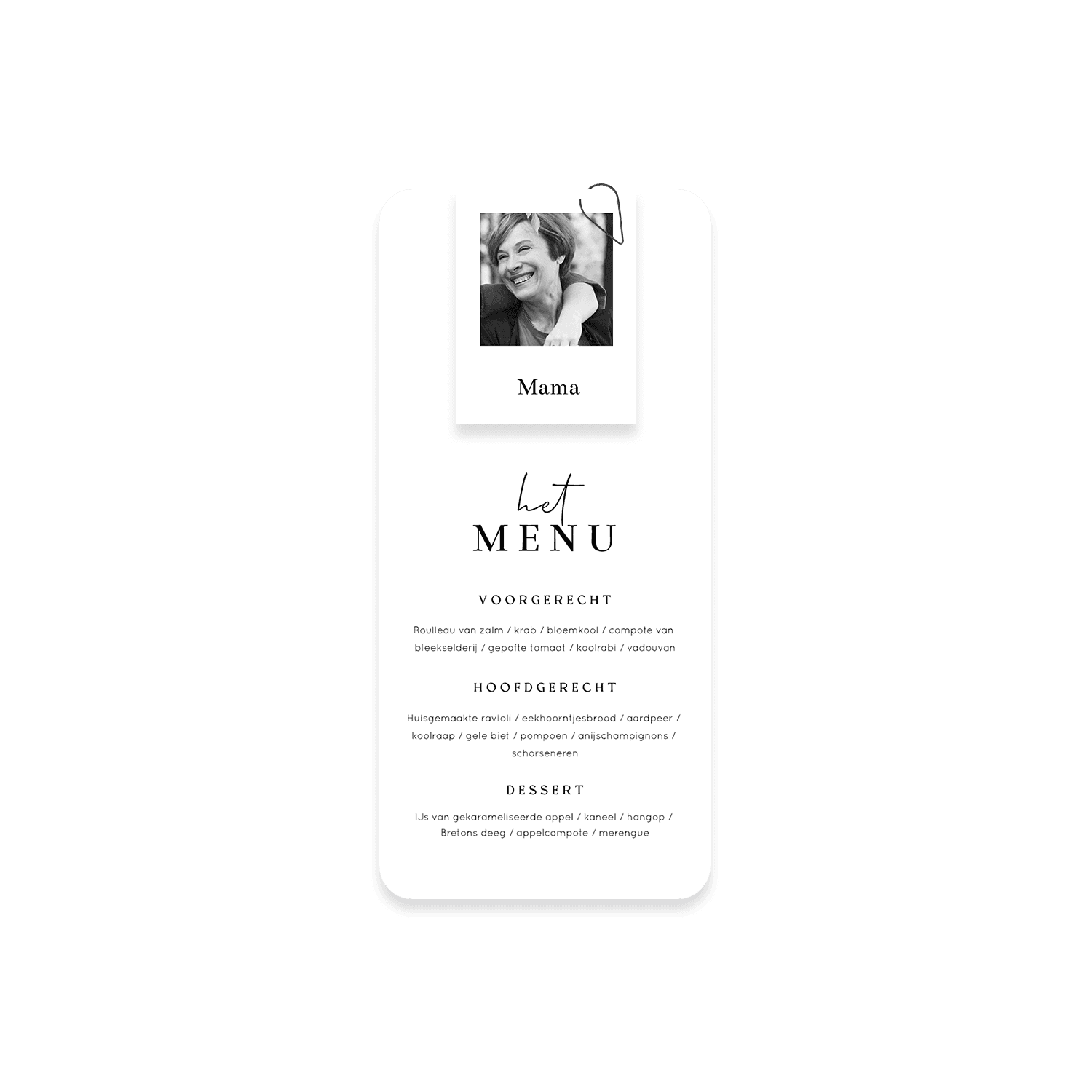 Menukaart minimalistisch met optioneel naamkaartje
