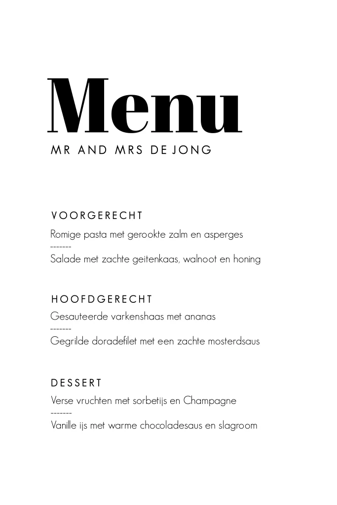 Deze menukaart is onderdeel van de trouwhuisstijl Love Statement