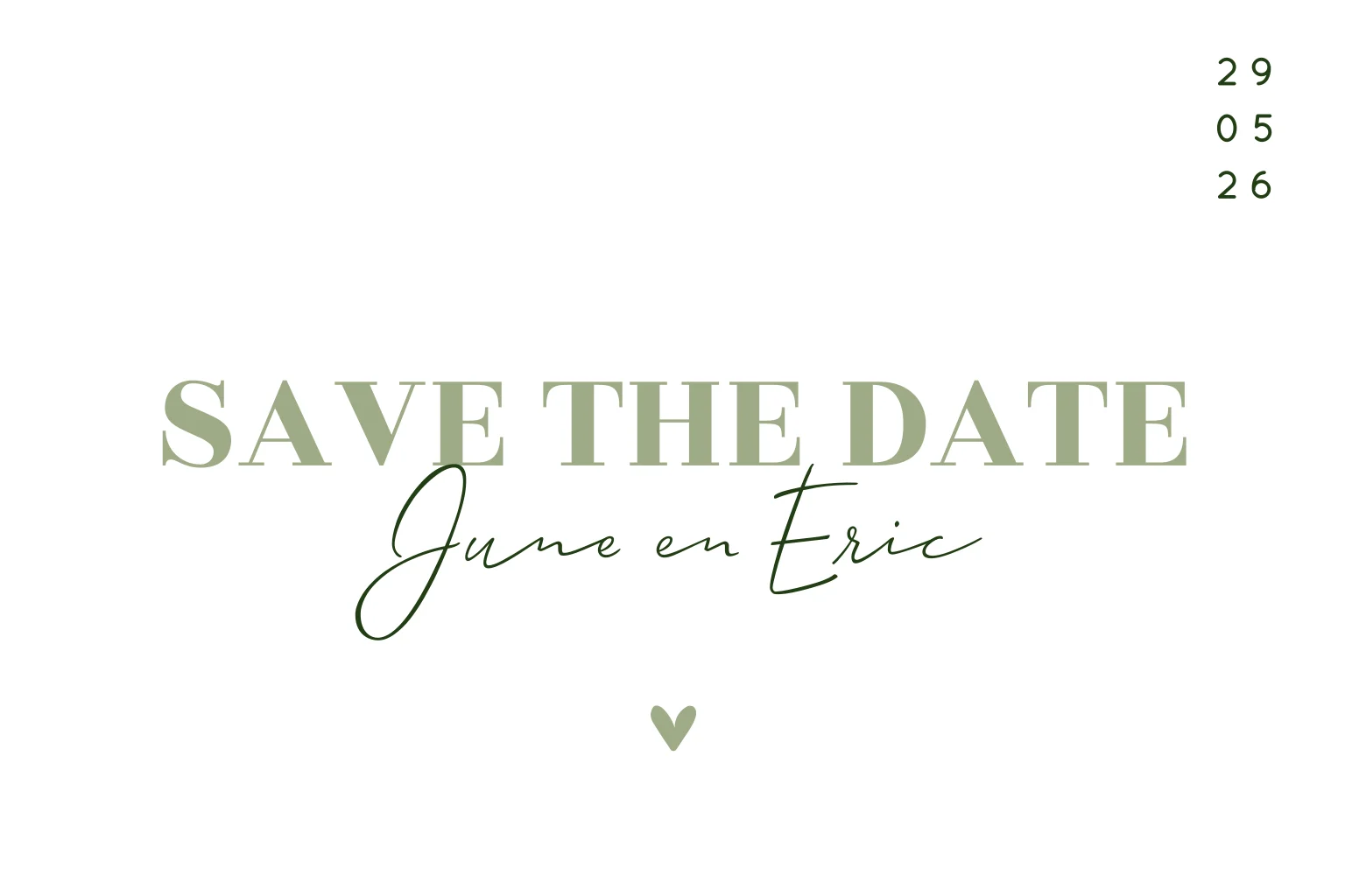 Hoe mooi is deze typografische save the date uitnodiging! Pas kleuren en typografie naar wens aan in de editor en bestel een proefdruk.