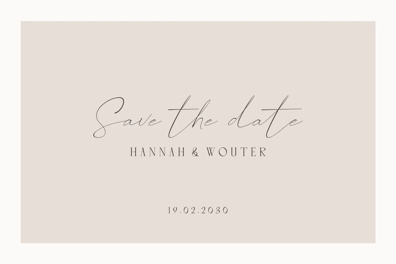 Jullie gaan trouwen, yes! Nodig jullie gasten uit voor jullie bruiloft met deze klassieke en elegante Save the Date kaart met neutrale kleuren.