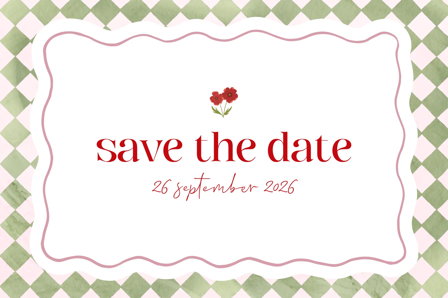 Save the date kaart met handgeschilderd patroon in de trendkleuren van nu.