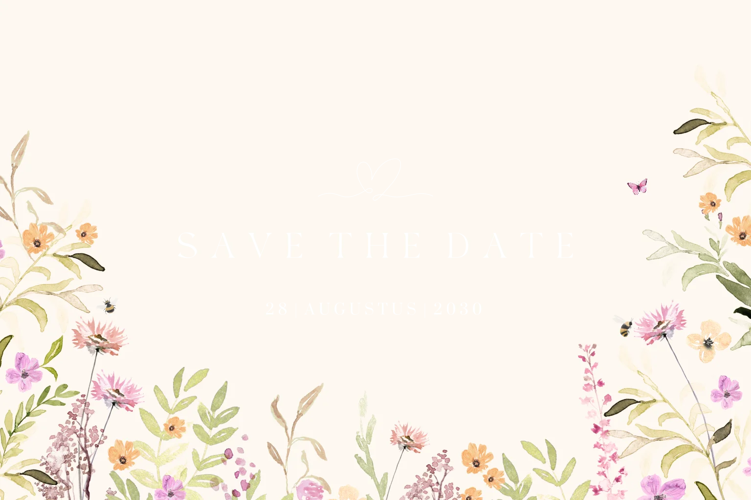 Kleurrijke save the date met handgeschilderde veldbloemen
