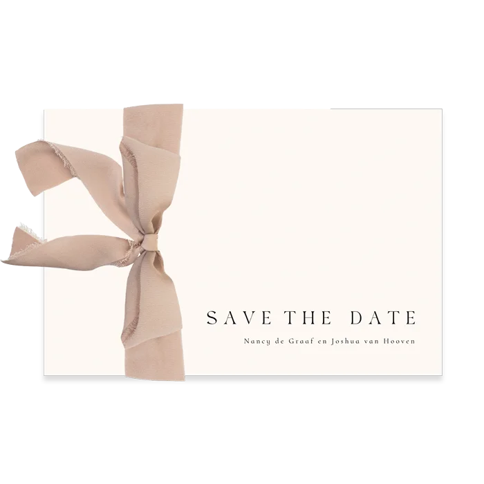 Unieke en stijlvolle save the date uitnodiging met lint.
