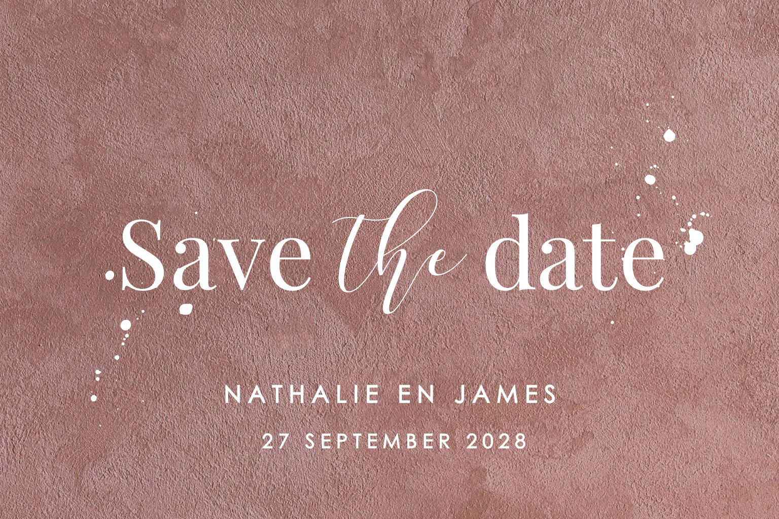 Hoe mooi deze romantische save the date uitnodiging met roséfolie op een roze velvet-look achtergrond?