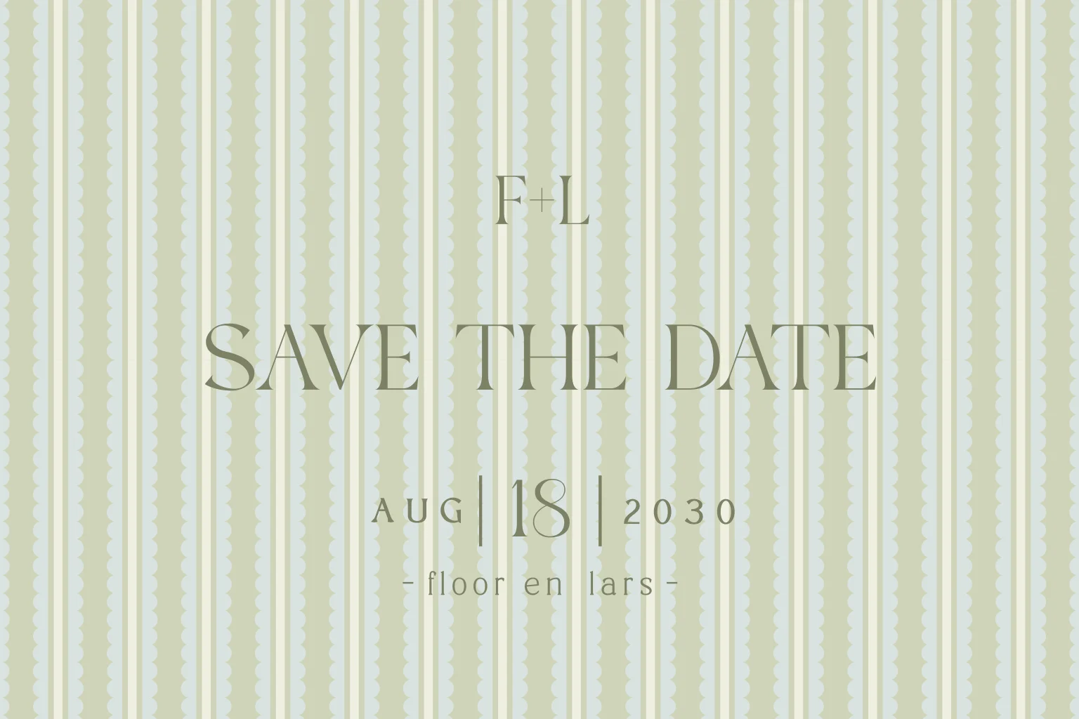 Stijlvolle save the date in groen met streeppatroon