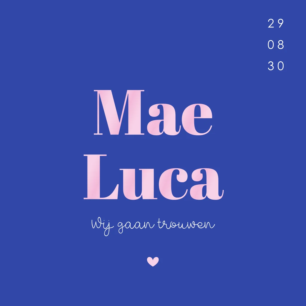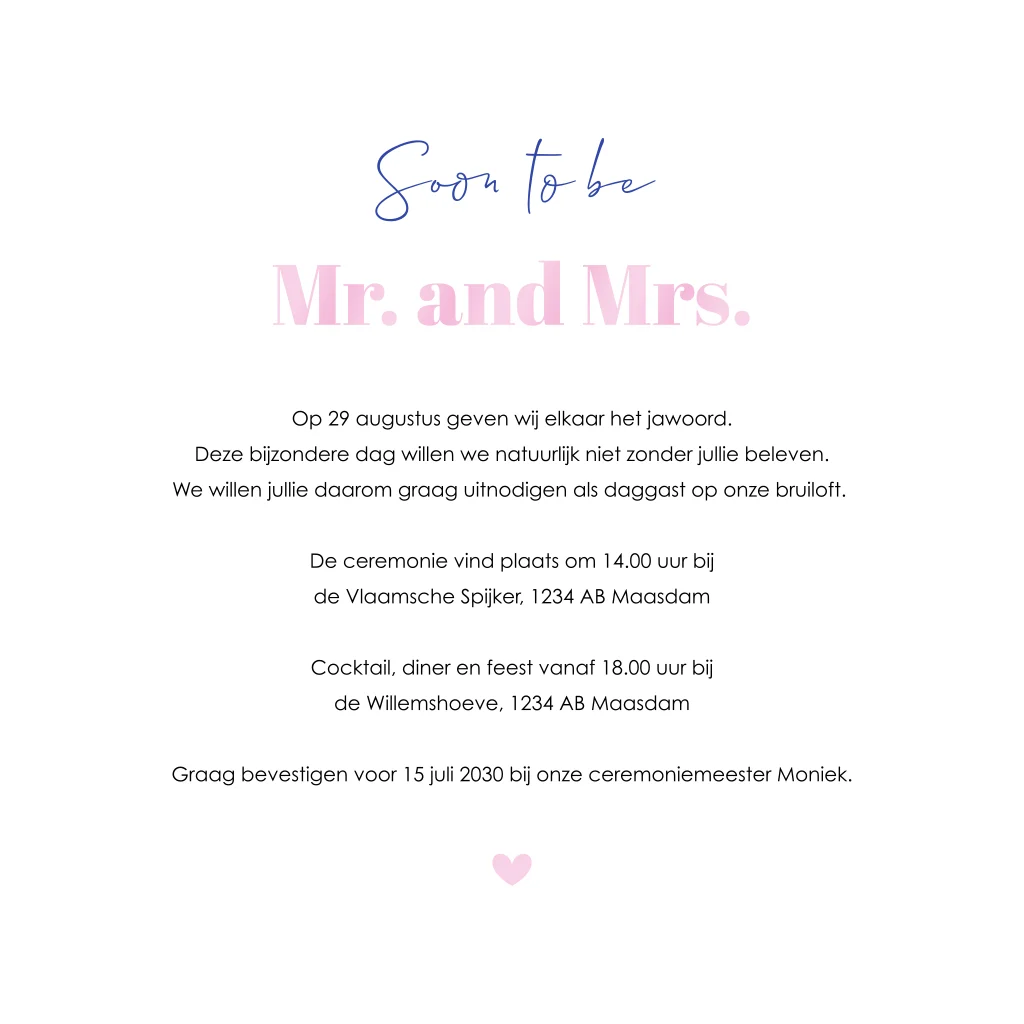 Deze trouwkaart maakt deel uit van een complete set in deze stijl.