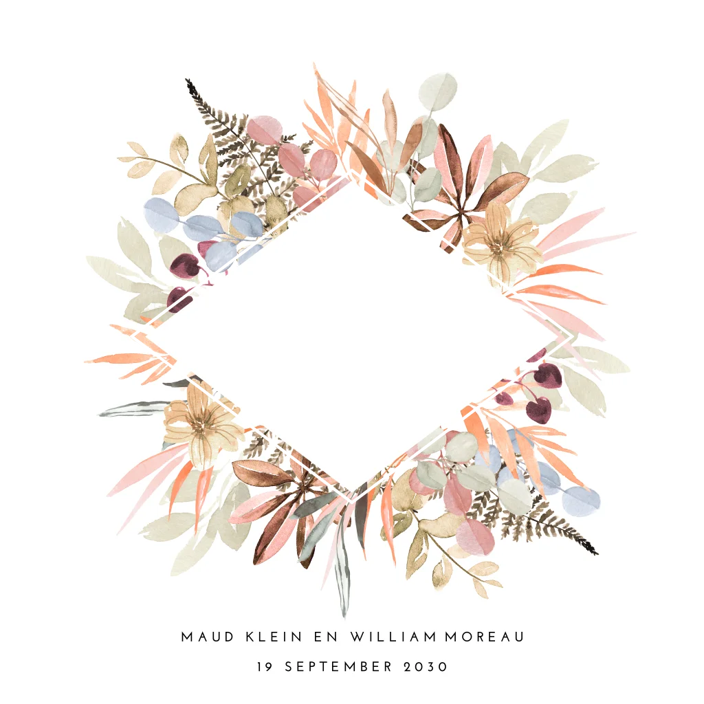 Deze trouwkaart maakt deel uit van een complete set in deze stijl.