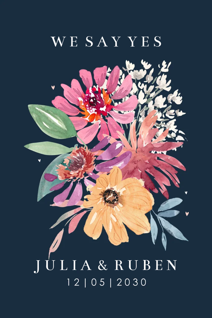 Deze trouwkaart maakt deel uit van een complete set in deze stijl.