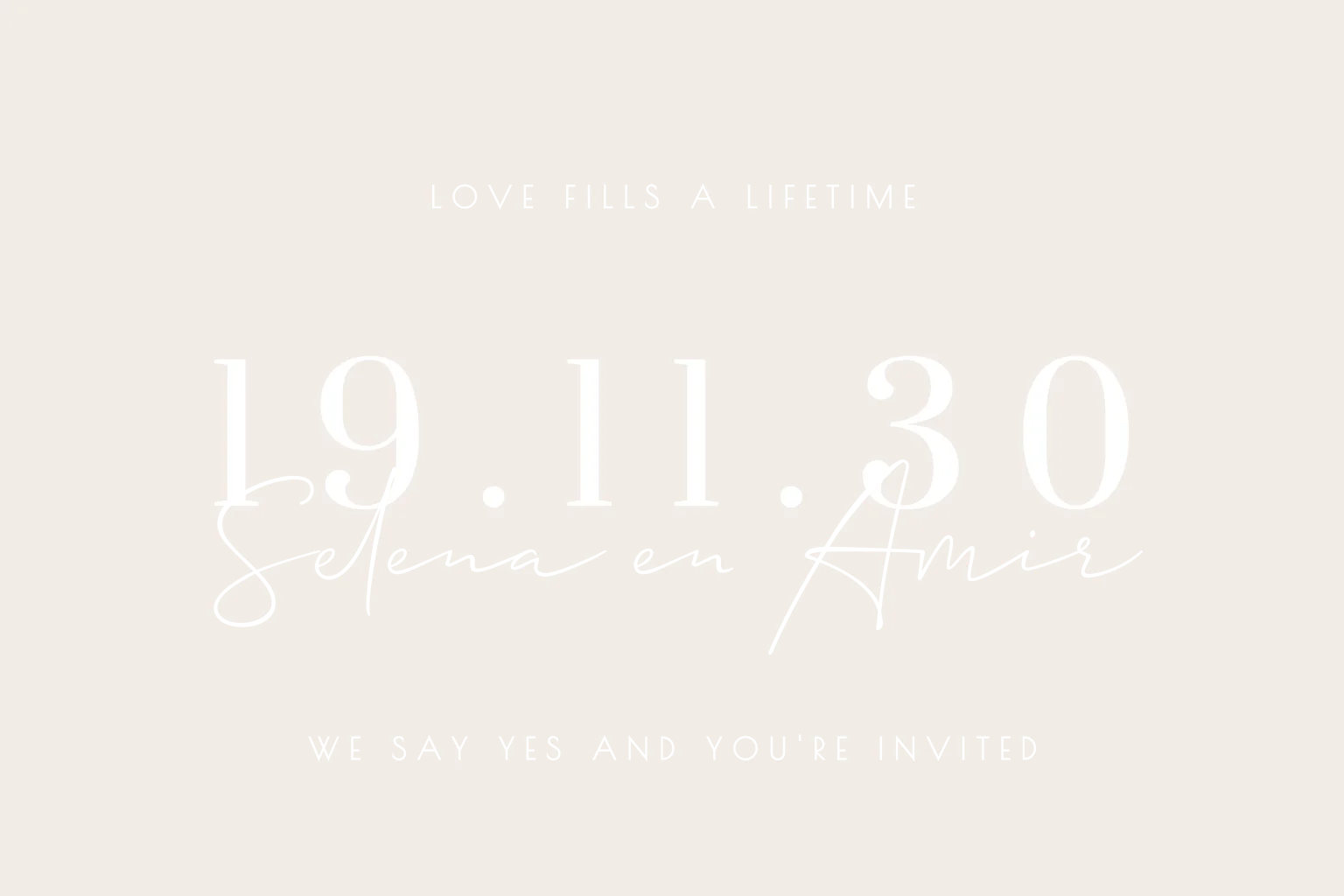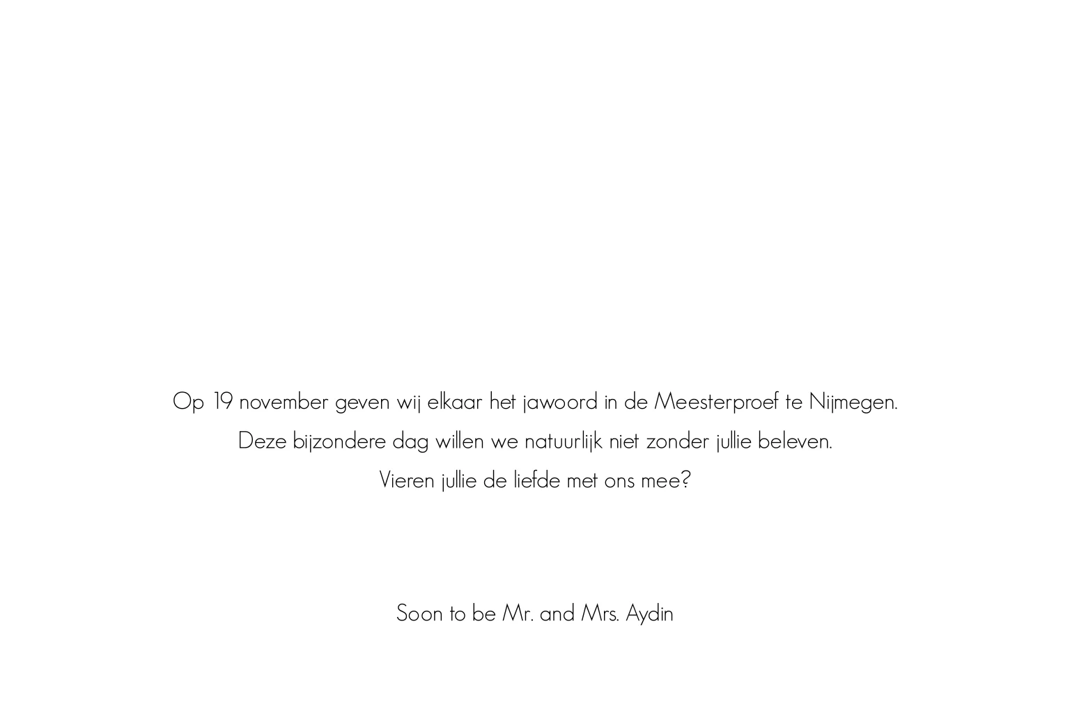 Stijlvolle uitnodiging met mooie typografie op de voorzijde. Pas kleuren en tekst naar wens aan in de editor en bestel een proefdruk.