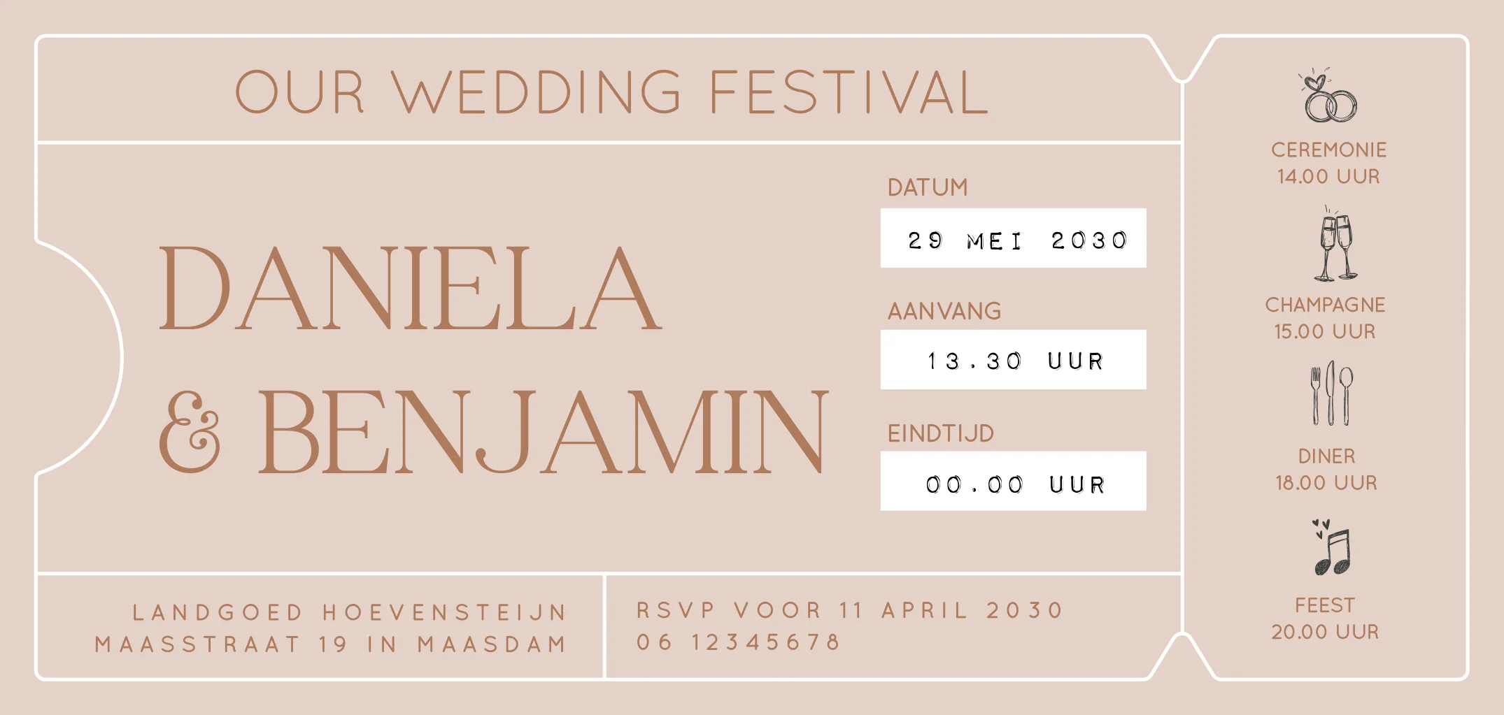 Deze trouwkaart maakt deel uit van een complete set in deze stijl.
