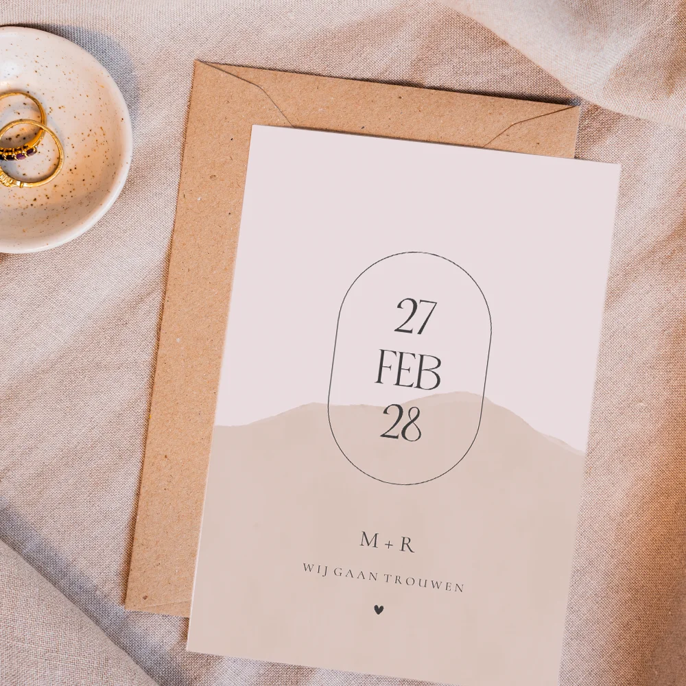 Trouwkaart met beige watercolor en ovaal