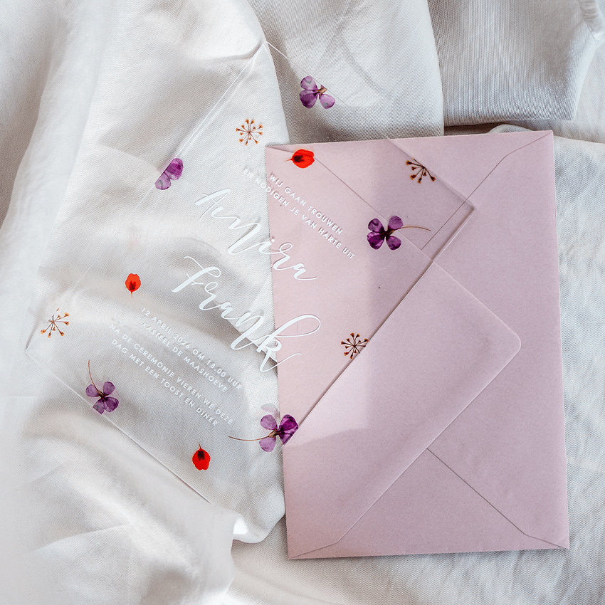 Deze trouwkaart maakt deel uit van een complete set in deze stijl.