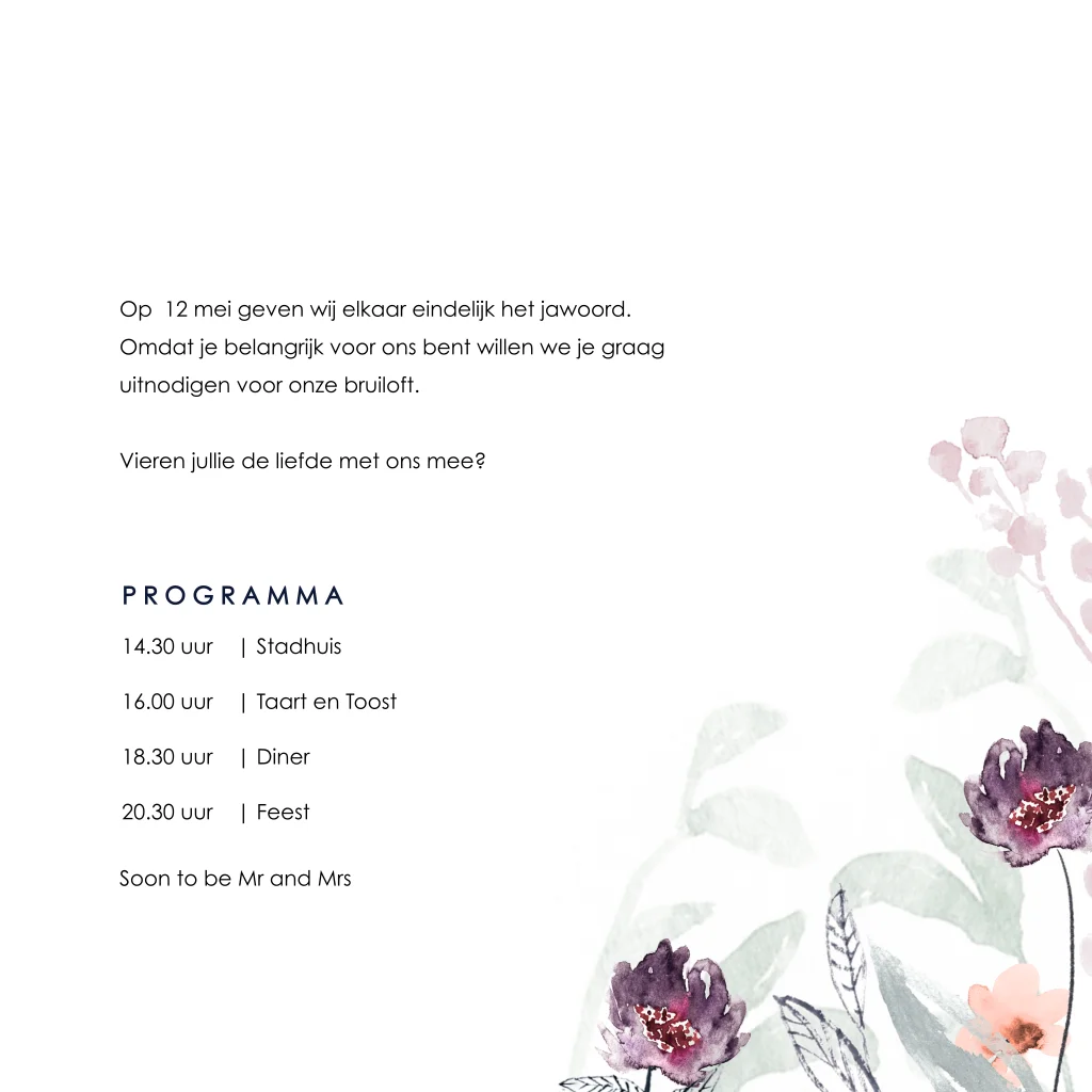 Deze trouwkaart maakt deel uit van een complete set in deze stijl.