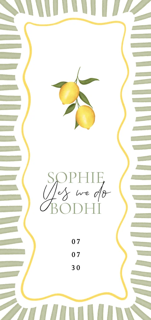 Goed om te weten: dit design bevat een kader. Omdat de kaarten na het drukken op een groot vel pas worden uitgesneden op het juiste formaat, kan het zijn dat het kader íetsje smaller of breder uitvalt. Dit gaat slechts om een paar millimeter, maar we willen het wel graag vermelden.