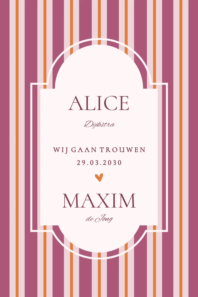 Tip: De kleuren van de strepen kun je helemaal naar eigen wens aanpassen – voor een uitnodiging die net zo uniek is als jullie!