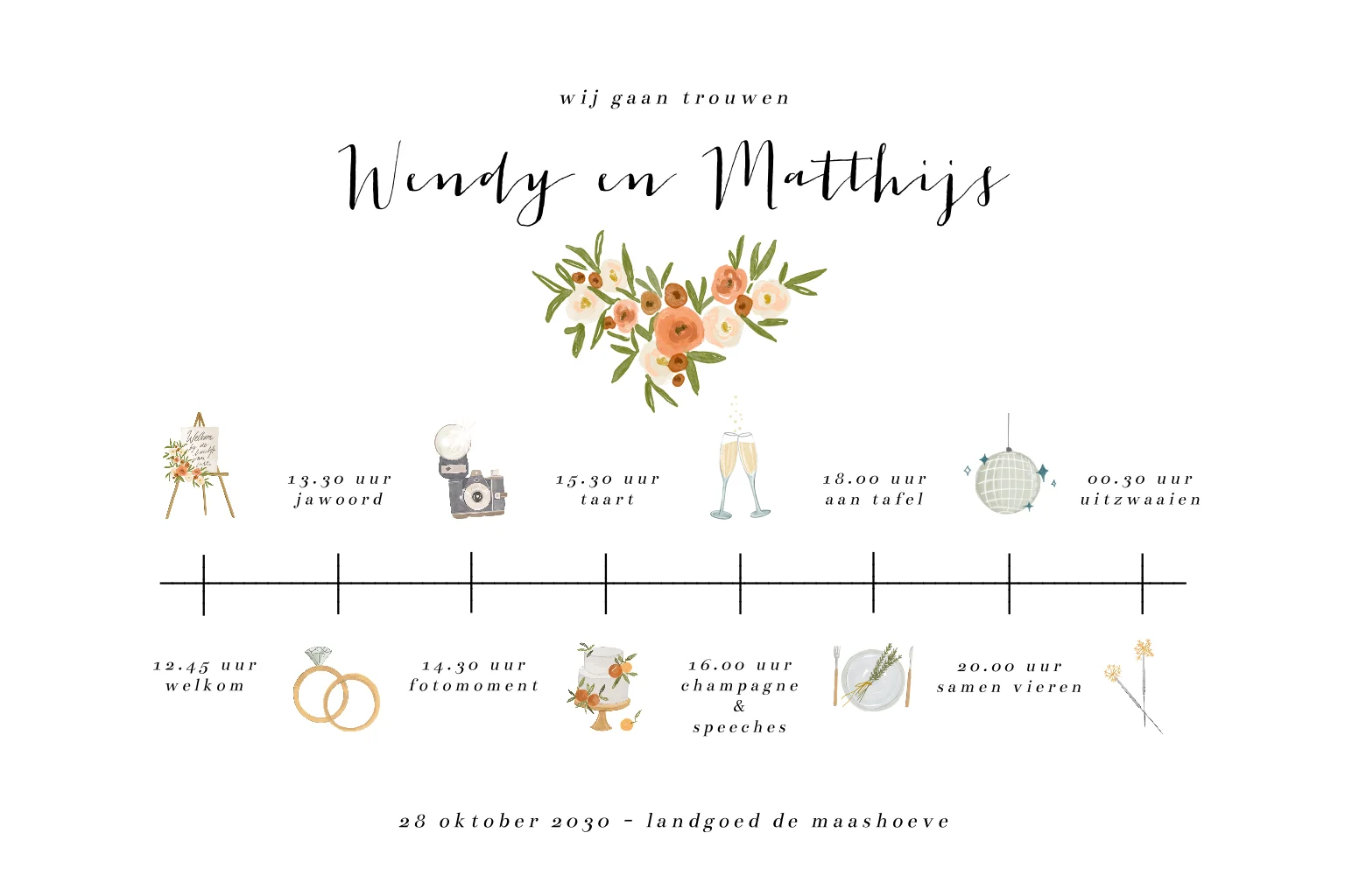 Deze trouwkaart maakt deel uit van een complete set in deze stijl.