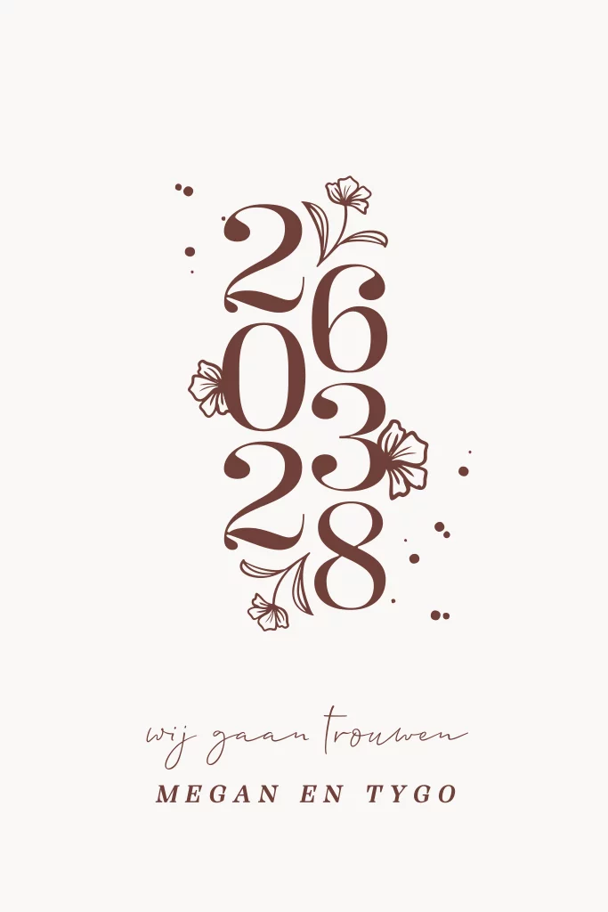 Trouwkaart met sierlijke datum en bloemen