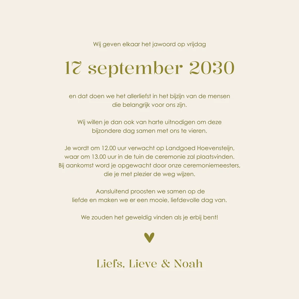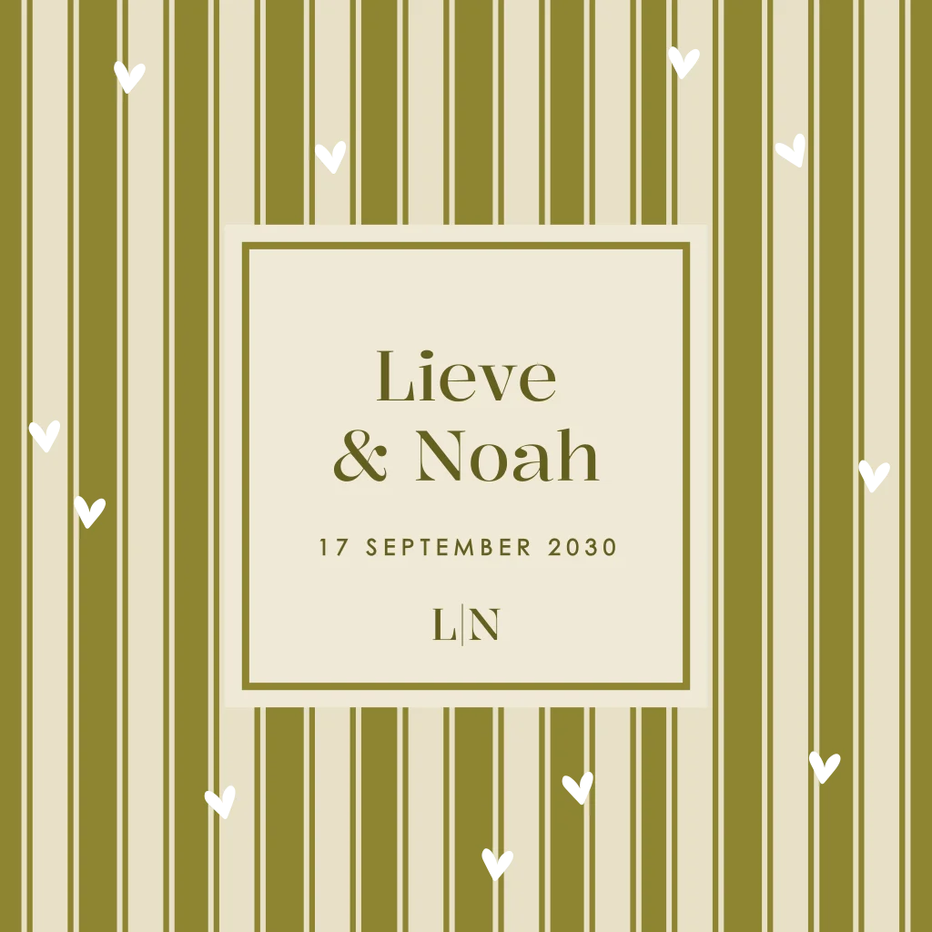 Op zoek naar een klassieke trouwkaart? Deze prachtige kaart met groene strepen en goudfolie hartjes heeft een romantische en luxe uitstraling.