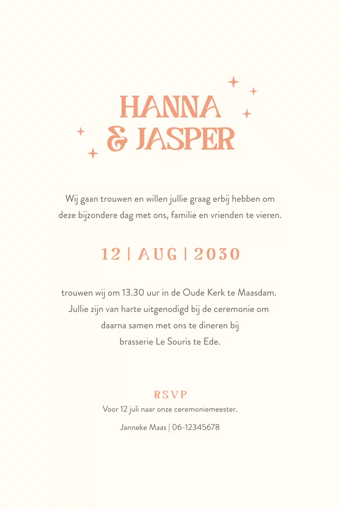 Goed om te weten: dit design bevat een kader. Omdat de kaarten na het drukken op een groot vel pas worden uitgesneden op het juiste formaat, kan het zijn dat het kader íetsje smaller of breder uitvalt. Dit gaat slechts om een paar millimeter, maar we willen het wel graag vermelden.
