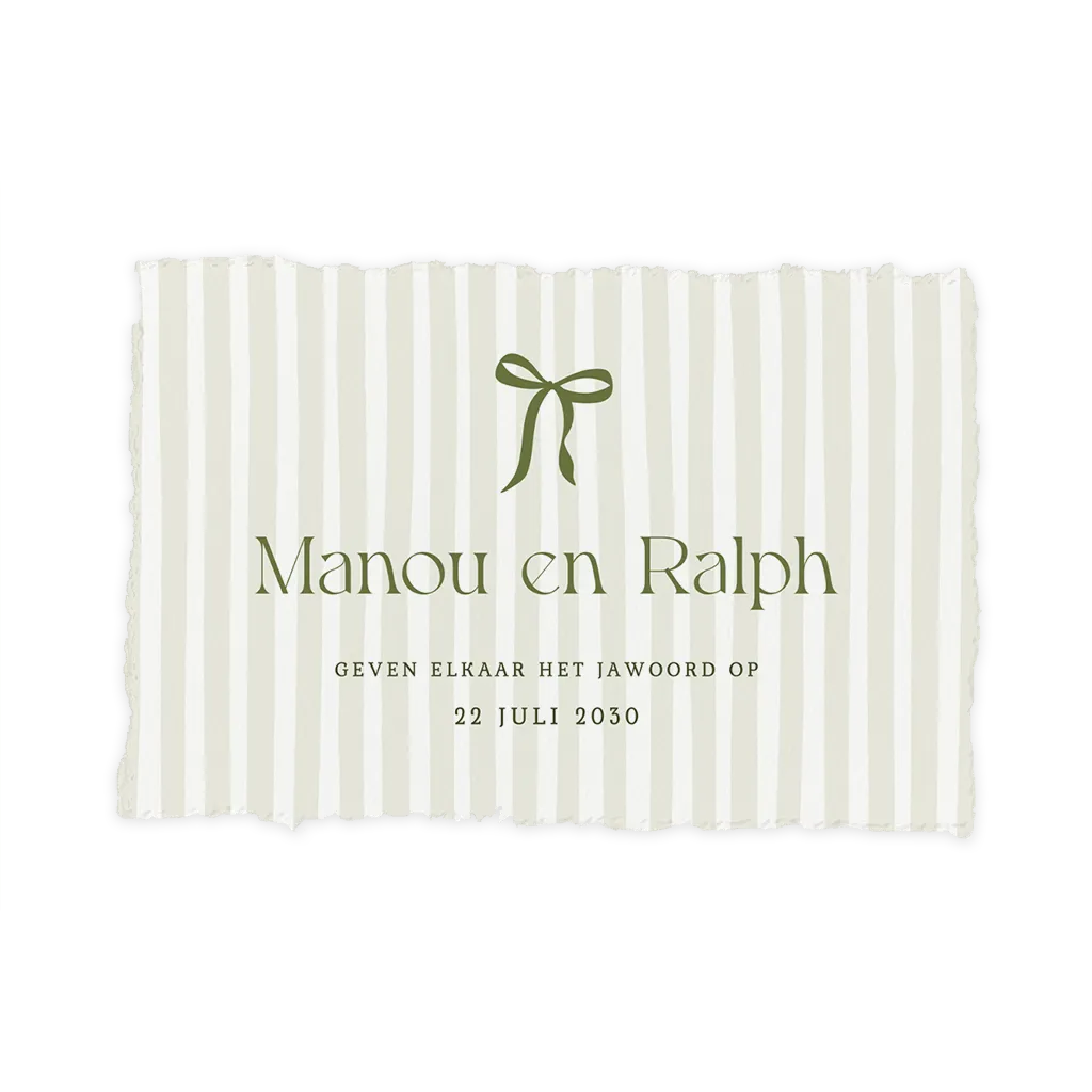 Wauw, een trouwkaart met een handgeschept papier-look! De randen van het papier geven de kaart een authentiek en uniek uiterlijk. Je kunt het papier door middel van een speciale liniaal zelf scheuren om de handgeschepte look te bereiken. We raden je aan om onderstaande tips goed door te lezen voor het beste resultaat.