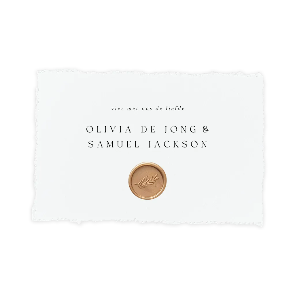 Trouwkaart handgeschept papier look met lakzegel stijlvol