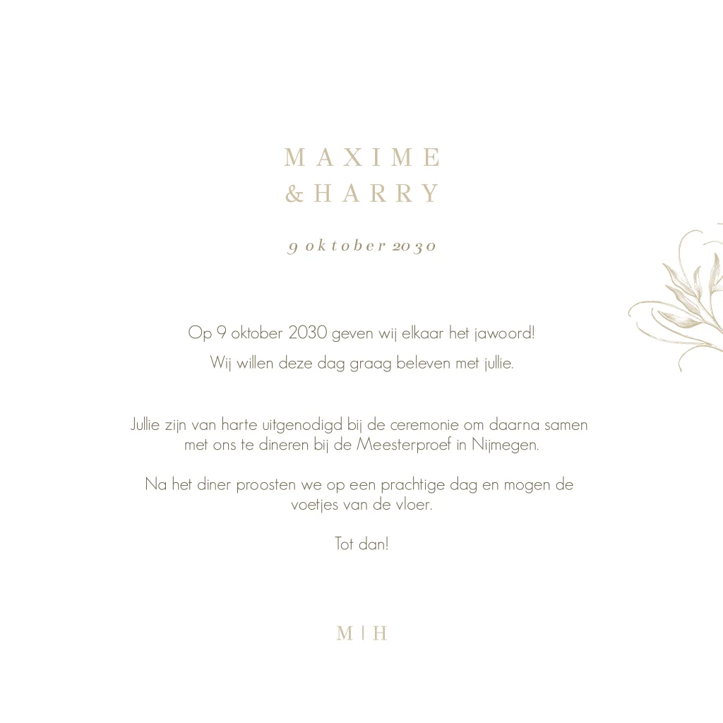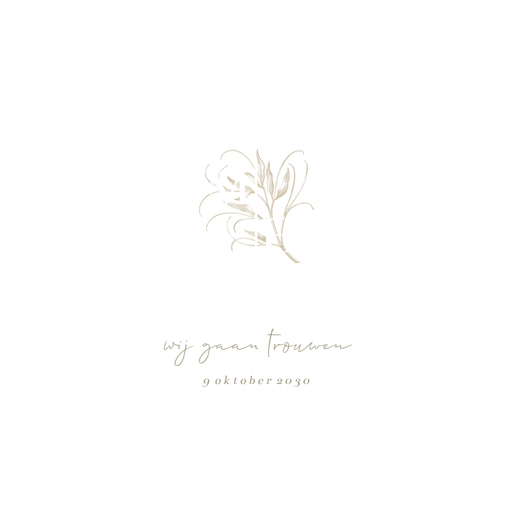 Klassieke trouwkaart met initialen en goudfolie