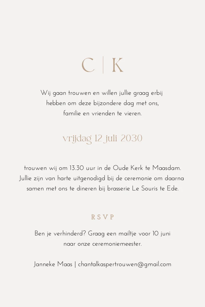 Deze trouwkaart maakt deel uit van een complete set in deze stijl.