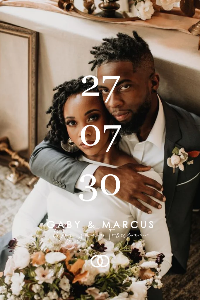 Deze trouwkaart maakt deel uit van een complete set in deze stijl.