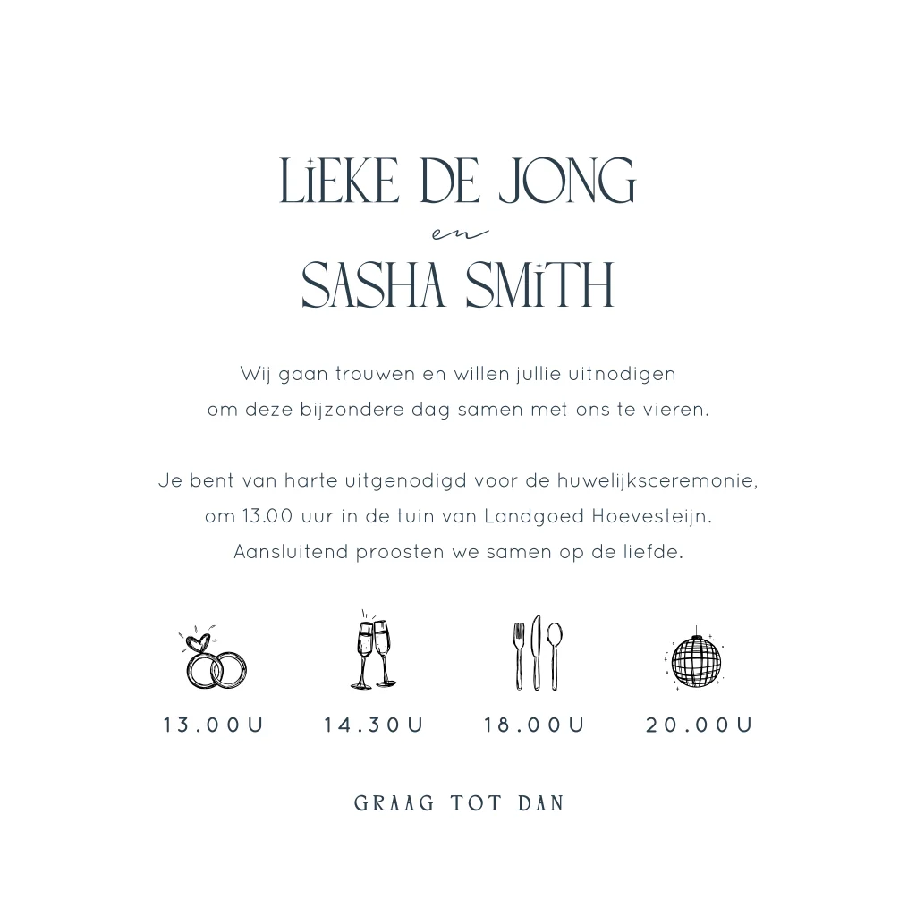 Deze trouwkaart maakt deel uit van een complete set in deze stijl.