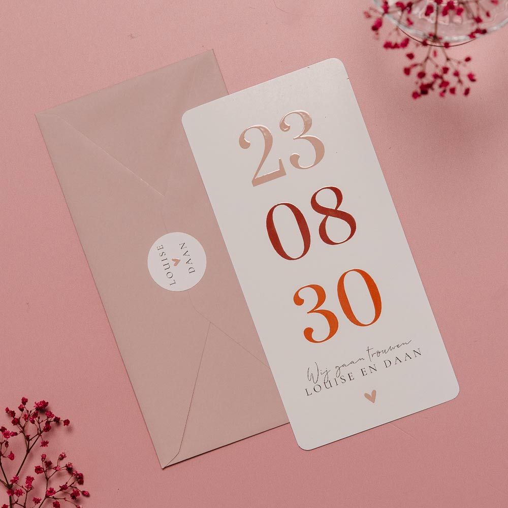 Deze trouwkaart maakt deel uit van een complete set in deze stijl.