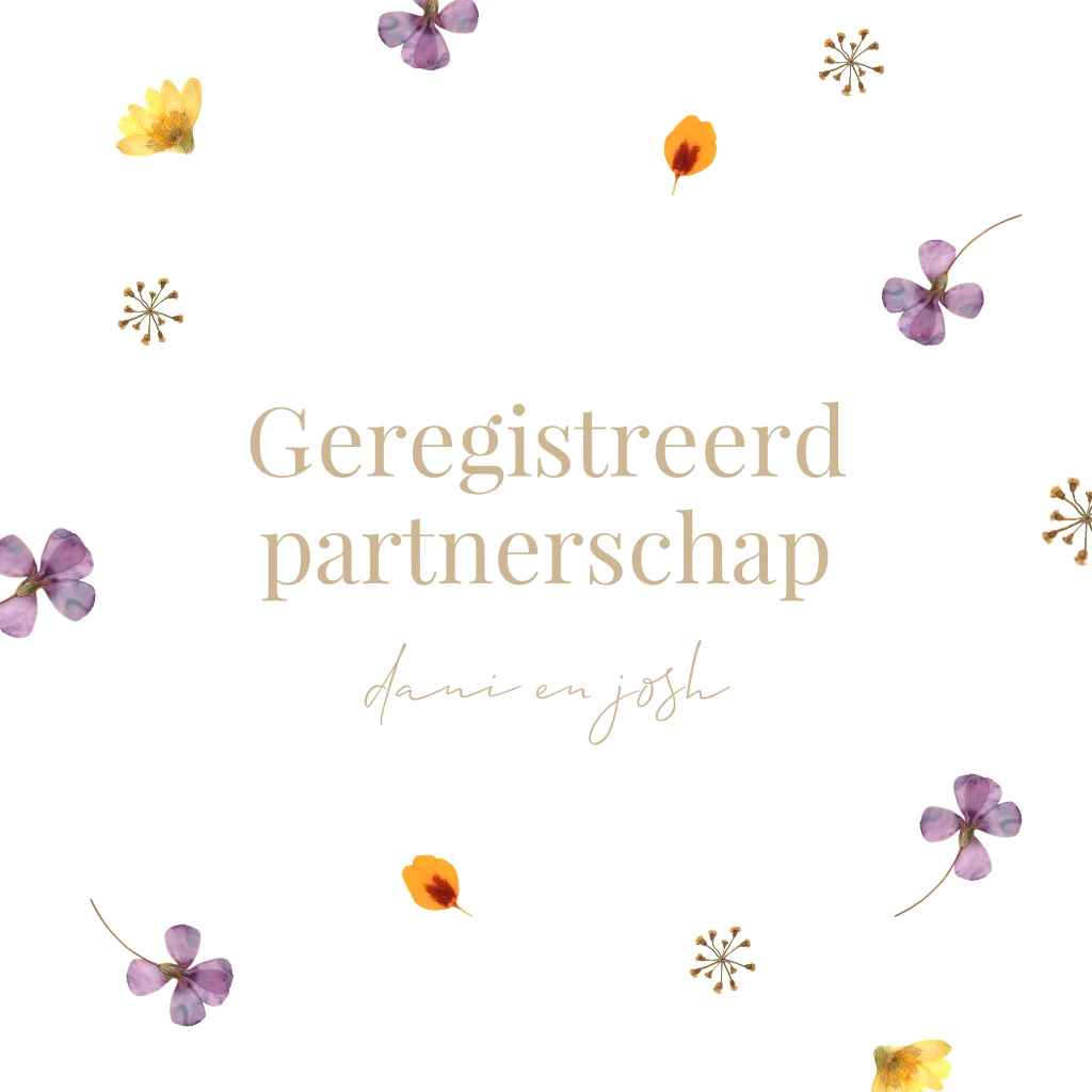 Geregistreerd partnerschap uitnodiging met gedroogde bloemen