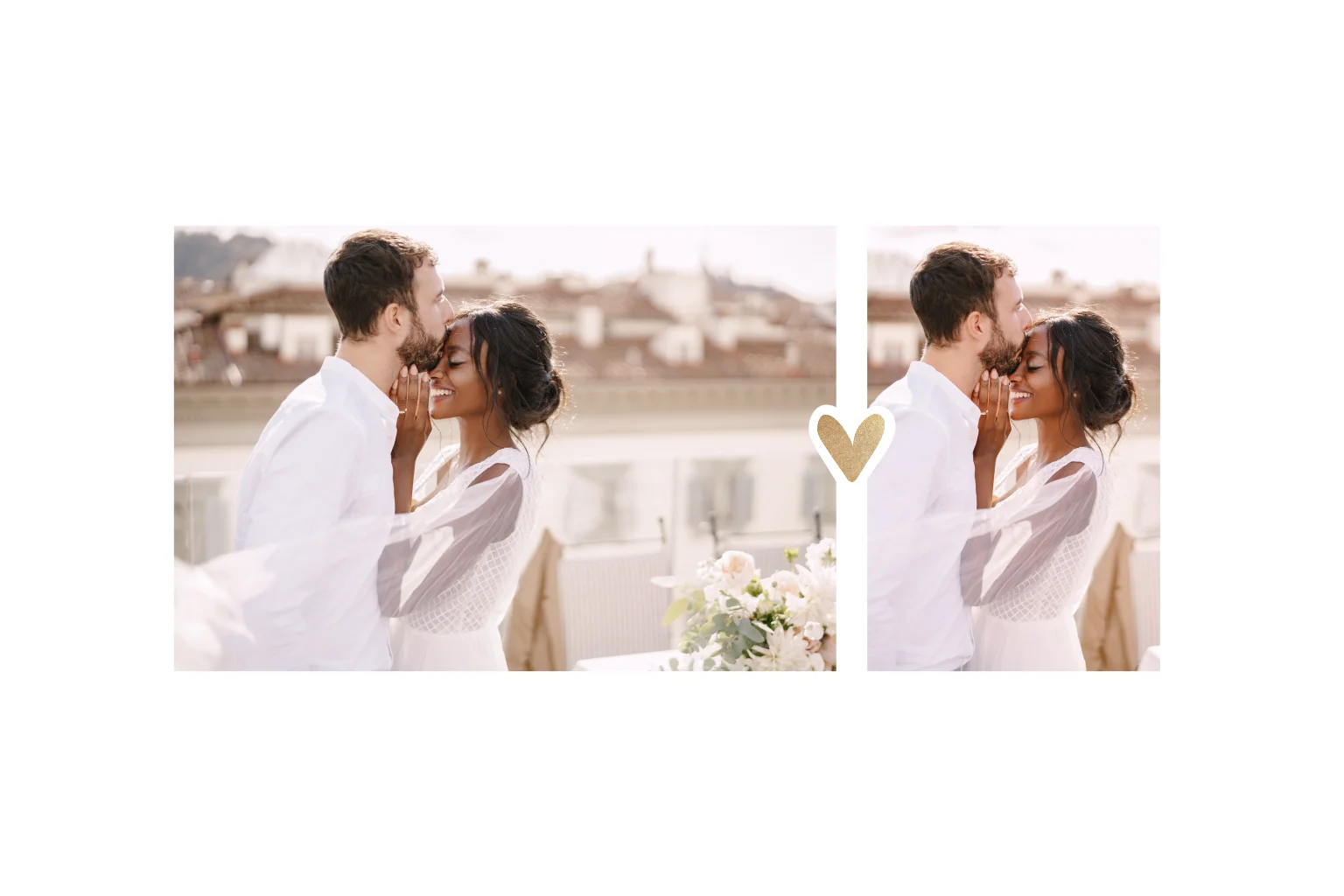 Kies heel eenvoudig illustraties en afbeeldingen uit onze beeldbank. Vervang heel eenvoudig de voorbeeld foto's voor foto’s van jullie eigen loveshoot en maak de kaart uniek door het toevoegen van illustraties en afbeeldingen uit onze beeldbank.