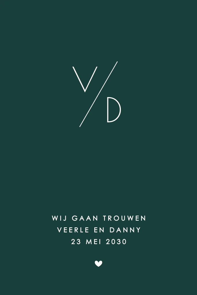 Prachtige cleane strakke trouwkaart. Goudfolie op een donkergroene achtergrond is een match made in heaven!