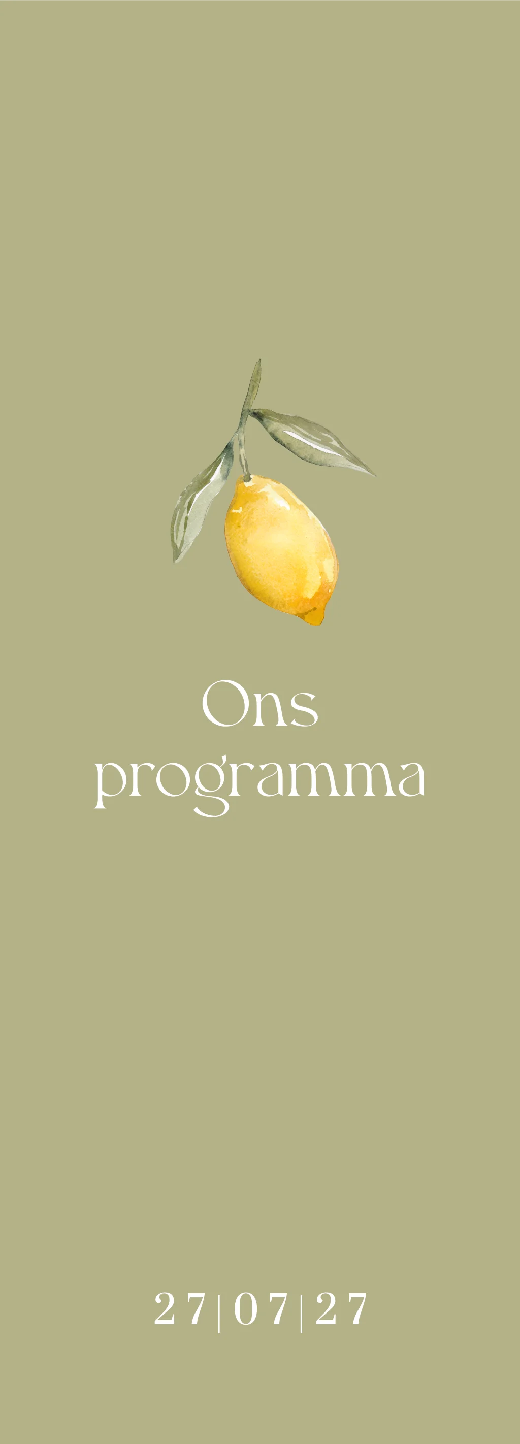 Maak jullie trouwkaart compleet met dit elegante smalle dagprogramma kaartje! Je kunt de strip los bij de trouwkaart in de envelop stoppen of aan de trouwkaart bevestigen met een mooie paperclip.