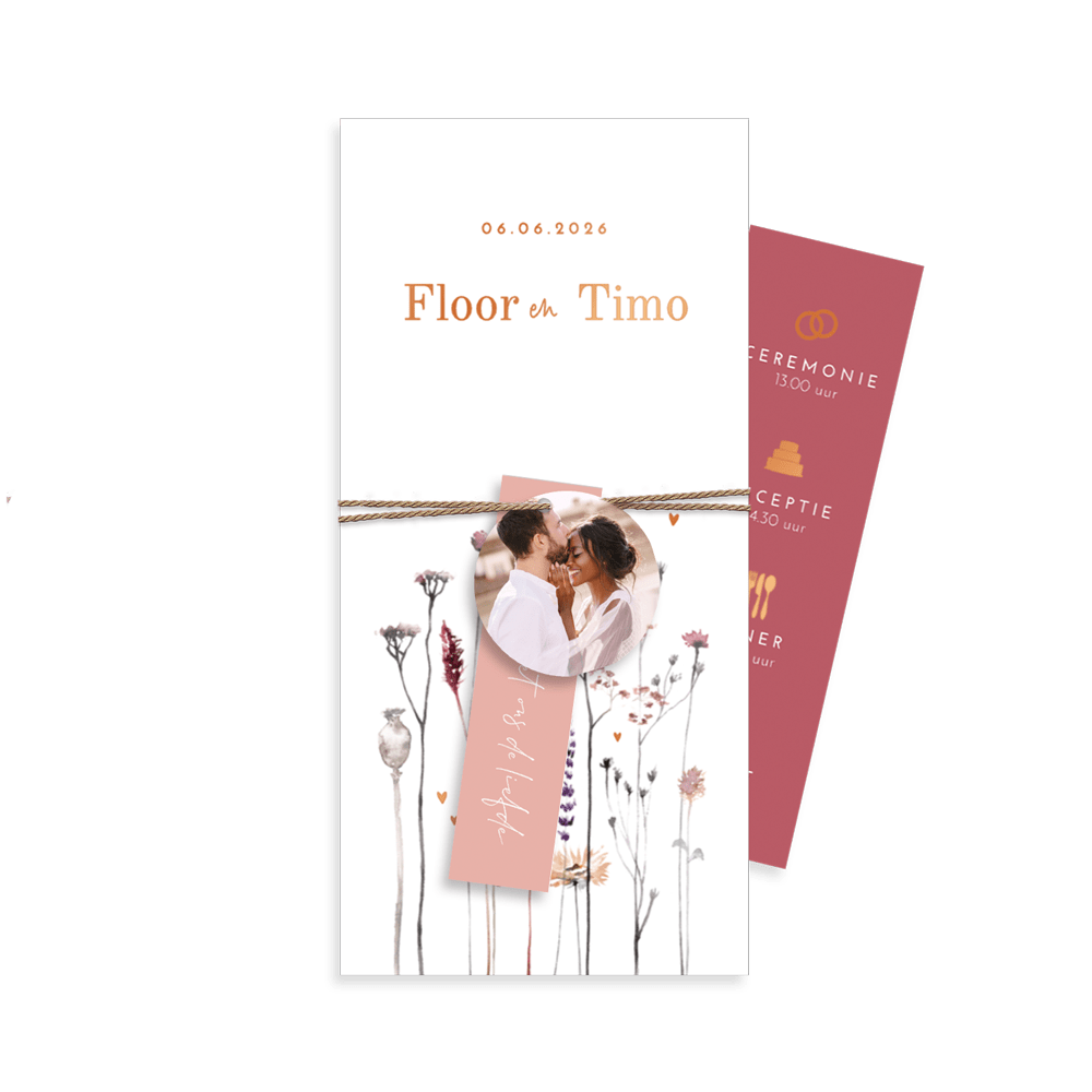 Deze trouwkaart maakt deel uit van een complete set in deze stijl.