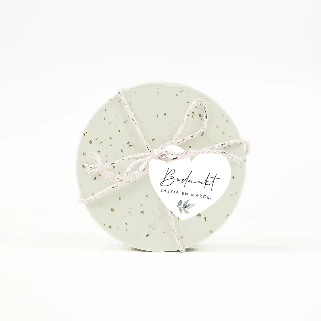 Hartvormig label met botanisch element