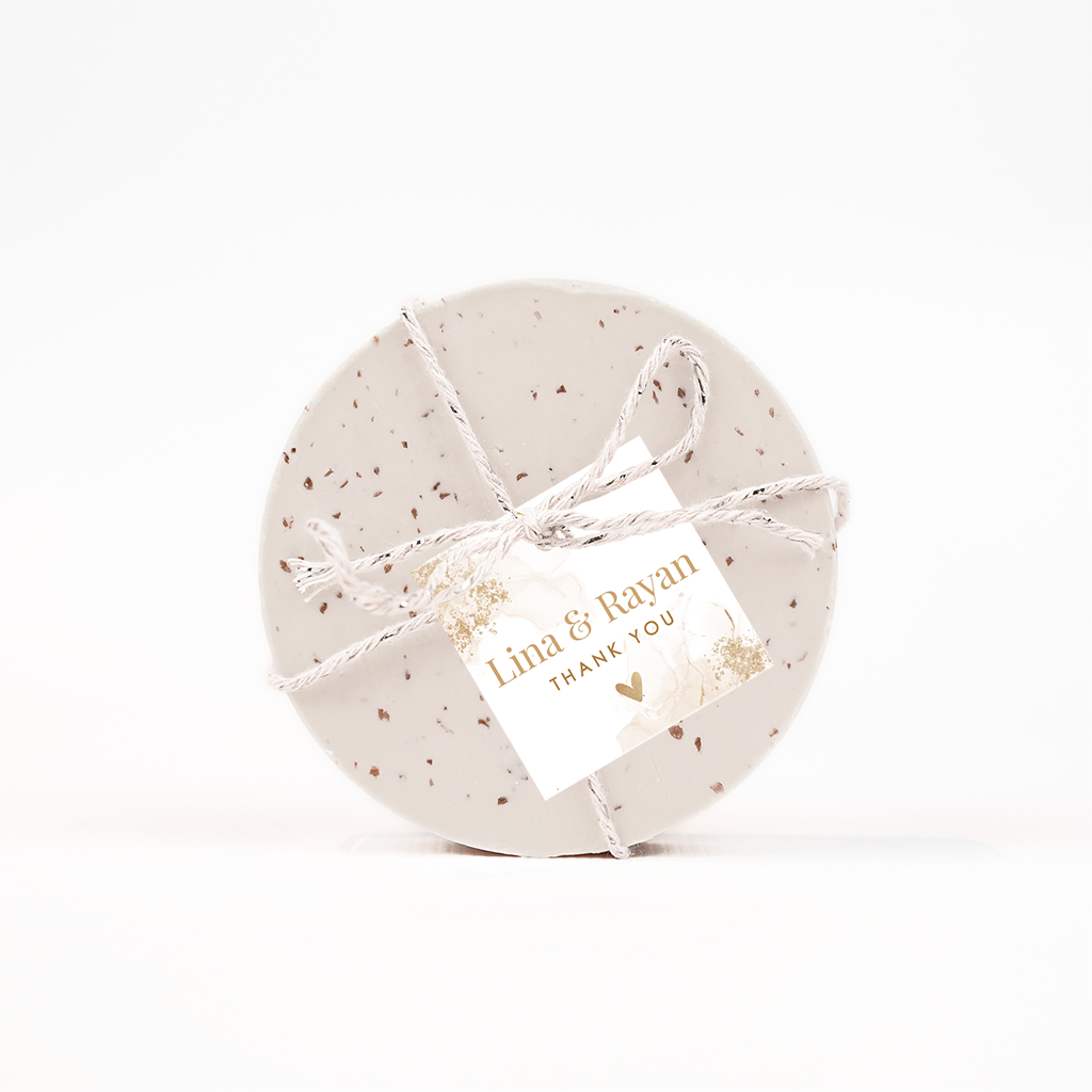 Hoe gaaf zijn labels voor jullie trouwbedankjes in de stijl van jullie trouwkaart? Vertaal het ontwerp door naar deze speciale bedankjes en laat alles met elkaar matchen. Bewerk de labeltjes in vierkante vorm met boorgaatje gemakkelijk in de editor. Thuis hoef je ze enkel nog aan een leuk item zoals een zeepje, kaarsje of potje te bevestigen met passend bevestigingsmateriaal.